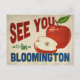 A charming Bloomington Minnesota vintage travel postcard featuring a lovely red apple, along with fun retro style text that says, "See you in Bloomington"