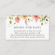 A book request insert card for baby shower. Featuring bees and colorful flowers and poem: "ONE SMALL REQUEST, WE HOPE NOT TOO HARD
