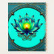 Blossom of Elegance, Mystic Lotus. The lotus blossom is symmetrical and exquisitely detailed, with its petals in harmonious shades of teal, blue, and green. The bright yellow centre of the flower adds a vibrant accent and highlights its central position. The design combines natural beauty with ornate decoration, creating a harmonious, elegant image that is both modern and traditional.