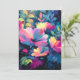 A bold, painterly garden bursting with blooming flowers in pink, blue, and purple.