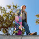 A bold, painterly garden bursting with blooming flowers in pink, blue, and purple.