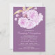 Spring blossom botanical watercolor flower painting art pre-wedding evening reception invitations on dark purple with lilac-pink floral tones. A beautiful floral art design ideal for a spring flower themed wedding. © Original watercolor art and design by Sarah Trett www.sarahtrett.com for www.mylittleedenweddings.com