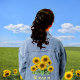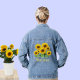 Elegant yellow sunflowers with light yellow text Denim Jacket. Text can be personalised.