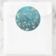 A round sticker with Blossoming Almond Tree (1890) by Vincent van Gogh (1853-1890). A Dutch post-impressionist painter. Springtime blossoms on branches against an aqua background. One of his most well-known paintings.