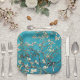 Paper plates with Vincent van Gogh's, Blossoming Almond Tree (1890). This painting was done in Saint-Remy, Southern France, also known as, Almond Branches in Bloom, from the post-Impressionist period. One of his most well-known paintings. White and pink flowers against an aqua blue sky.