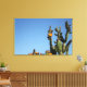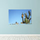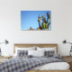 Blossoming Green and Yellow Cactus Plant Against the Blue Sky Stretched Canvas Print to add to your home / office / business decor collection. A cool gift / present idea for all who love nature, floral prints, wall art, custom design original and unique items.