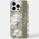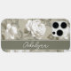 Add a touch of elegance to your iPhone with this stunning floral case. Featuring delicate white blossoms and green leaves on a pale sage green background, this case offers both beauty and protection. The customisable white banner in an elegant hand-written font lets you add your name or a personal message, making this case truly unique. Perfect for vintage and Cottagecore lovers, this case blends style with functionality.