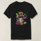 I give wanted to give this a 4 instead of a 5 because these Basic DARK T0shirts run unexpectedly SLIM or Narrow. Which is great if you do not have a potbelly, but I have a paunch. It isn't the shirt's fault that I've got a beer belly. The design and shirt itself is a quality cotton shirt. The color is more of a deep purple, but still a very pretty color. The Basic DARK T-shirts run a bit SLIMMER than the Basic Ts. The neck is a fraction narrower (or seems to be narrower) also. I'm a paunchy middle-aged woman and my neck is 12 inches (31cm) thick and the neckline fell about the same as in the photo of the man, and I had the desire to tug it a bit. So if you're a thick necked man or like loose shirts, be aware these are slimmer shirts. Once I get rid of my lockdown paunch it'll look great. The shirt washed well in cold water with no apparent bleeding. We don't have a dryer, so it hung dry. Did not shrink. Love the colors and the design. The design looks smaller on my shirt than it does on the model on-line. But still, it looks good on the shirt. The printing looks as it does on the model, just the size seems fractionally smaller. Washed garment in cold water, hung dry and design appeared unaffected.
