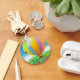 Artist: Paul Sharp | A little boy and girl flying in a hot air balloon over a farm