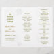 Fold this Fall wedding program template in thirds after purchase. A leaf design covers the back of this white paper. Brown and dark green template text is easy to change and customise for your ceremony. It will open like an accordion with all printing - images and text - on ONE SIDE ONLY and must be folded after purchase.