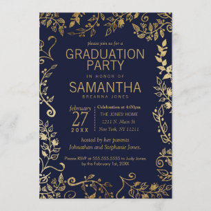 Elegant Navy Blue and Gold Graduation Party Invitation