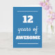 Modern blue 12 years of awesome card, which you can easily personalise the inside card message if wanted. A great 12th birthday card for grandson, son, godson, etc.