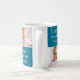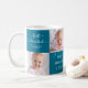 “First Hanukkah.” A playful grid of 2 personalized photos of your choice and white handwritten script typography and snowflakes overlaying a teal blue background, helps the proud grandparents usher in Hanukkah and New Year. Feel the warmth and joy of the holiday season whenever they use this stylish and modern personalized photo keepsake holiday mug. Perfect gift for the newly proud Nana & Papa!