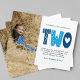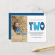 Modern, simple and elegant boy second birthday thank you postcard. Design featuring blue and navy typography two , thank you message and a photo.