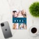 “Happy Hanukkah.” Fun, playful, whimsical handcrafted real gold foil and light blue typography, a random gold foil Star of David pattern, and midnight navy blue hand drawn lines overlay a dark teal blue background. Add 3 photos of your choice to help usher in Hanukkah with this stunning, colourful, personalised real gold foil greeting card. Hand drawn dark blue lines overlay a light turquoise blue background on the back. Feel the warmth and joy of the holiday season whenever you send this festive greeting. Matching stickers, pillows, wrapping paper, serving trays, home décor, and more are also available. Make this Hanukkah one to remember!