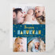 Blue 3 Photo Happy Hanukkah Fun Modern Real Gold Foil Holiday Card