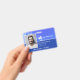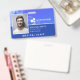 Hospital or nursing home employee badge with an abstract background in hues of blue. Add a photo of the employee along with name and profession. Personalise further with your business logo.