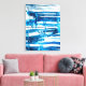 Watercolor abstract fine art. Blue and white stripes. Icicle waterfall inspired.