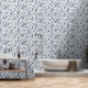 Blue abstract line leaves pattern Wallpaper. Refresh your space with this Blue abstract line leaves pattern wallpaper. Perfect for a kitchen backsplash, bathroom and more.