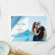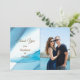 Of course your wedding guests would love to have a wedding or honeymoon picture of you! So this modern flat wedding thank you card features your photo next to a pretty abstract watercolor design in tones of blue and white. Your custom text is in gold on the abstract design. The back of the card is white, with custom text fields. This card matches wedding invitations and other products in our store.