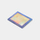 An abstract design composed of blues and other muted colours in subtle faded pixels squares and box shapes. A pink bordered, faded abstract, multicolored overlay in the centre for writing on.