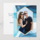 What your wedding guests really want from you is a photo thank you! This one encloses your honeymoon or wedding photo within a double gold hexagon frame. The frame and photo are placed on a stunning abstract watercolor design in tones of blue. The back of the card is white, with two text fields for your own message and signature. This card matches the Blue Abstract Watercolor Double Frame Wedding Invitations and other wedding products in our store.