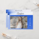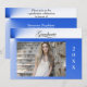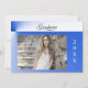 A modern card for a graduation party invitation with a blue colour scheme. The blue ray spreads from a single point at top left. A similar background on the back of the card holds the invitation details. The year of graduation text on the front and information text on the back is easily changed by using the template. The same holds true for the photo. For any other desired changes (different type fonts, colour, size or position OR to resize or reposition the "Graduate" text image on the front), select "Personalise this design" then select "Edit using Design Tool." Although the text specifies a high school graduate, it can, of course, be changed with the template to indicate a college or other institution.