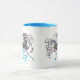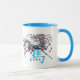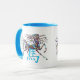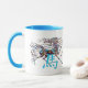 An artistic image of a stylised abstract multi-colour horse is the background for the Chinese symbol for horse in turquoise blue on this mug. Between the identical images on each side in black is "2026", the year of the horse in the Chinese zodiac. The text is customisable, so you may change or remove it if you'd like.