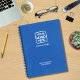 Modern, professional and personalised notebook for your employees to take notes and keep them organised. This design combines an upbeat and modern blue background with the always professional simple and easy to read white typography. Versatile design adapts to any industry or type of business. Furthermore, it transfers easily to other business supplies, office accessories and promotional products.