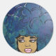 Blue Afro Ebony Girl Big Hair Classic Round Sticker