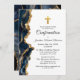 Celebrate the sacred occasion of Confirmation with this elegant Blue Agate Gold Confirmation Invitation. Featuring a stunning blue agate design enhanced with shimmering gold accents, this invitation combines modern sophistication with a sense of timeless beauty. The gold foil typography stands out against the rich blue background, while the overall design is fully customisable with your details, including the name of the confirmand, ceremony date, time, and RSVP information. A perfect choice for marking this significant spiritual milestone with grace and style.