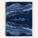 Blue agate marble rose gold name script notebook
