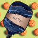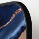 A dark blue and rose gold agate, marble stone print as background Personalise and add your name. The name is written with a modern hand lettered style script with swashes.