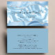 This elegant modern business card features an image of pastel blue silk, framed on the top and bottom by blue watercolor agate borders trimmed with sparkly silver faux glitter. Personalise it with your name in off-black handwriting-style script and your business information in sans serif font. The reverse is a coordinating shade of solid blue. Ideal for hair stylists, makeup artists and aestheticians.