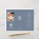 IMPORTANT NOTE: This trifold is supplied flat, WITHOUT pre-scoring. You will to fold it yourself. To assist you with accurate folding, guidelines are printed on the back for the three panels, plus an extra thin panel to the right hand side for you to apply glue to stick the trifold together once you have folded it. Blue All in One Photo Wedding Menu Table No Trifold. This handy DIY trifold combines your Table Number, Menu and Share the Love section with a QR code for your guests to scan and upload their pictures to your chosen website. The word "Menu" is in a set stylish script. Easily personalise the rest of the text as required and replace rhe sample image with your own. Change the sample URL of the QR code to that of your own URL and your QR code will automatically be generated to replace the sample code.