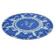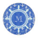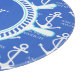 Add your own monogram to the ships wheel at the centre of this elegant blue and white anchor pattern.