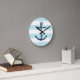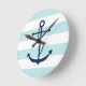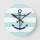 Blue Anchor on Mint Stripes Round Clock