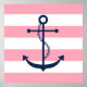 Blue Anchor on Pink Stripes Poster