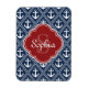 Blue Anchor Pattern Red Monogram Magnet