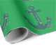 Blue Anchors With Christmas Lights On Green Wrapping Paper