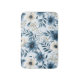 On a light blue background, there is a lovely pattern of dark blue and beige flowers with gold berries.