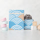 This stylish wrapping paper features a classic Japanese-inspired wave pattern in soothing blue and beige tones. Perfect for adding a touch of elegance to your gift packaging.