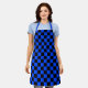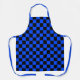 A blue and black checkerboard pattern fills the image, creating a uniform, alternating grid of squares, conveying a bold and geometric feel.