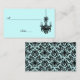 This aqua blue and black damask chandelier place card matches the wedding invitation shown below. If you require any other matching items, please email your request to niteowlstudio@gmail.com.