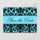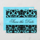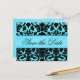 This blue and black damask save the date post card matches the wedding invitation shown below. If you require any other matching items in this design, please email your request to niteowlstudio@gmail.com.