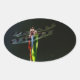 Blue and black Dragonfly on green and red grass Oval Sticker