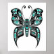 This unique design features a Haida inspired butterfly. The Native pattern depicts a tribal butterfly design that is comprised of flowing lines and elegant shapes. The butterfly wings spread out of each side of the pattern which creates a symmetrical design. This beautiful pattern is a stylish representation of this wonderful flying creature.