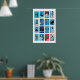 Blue and Black Matchbox Label Collage, minimalist Poster