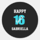 Personalised with name, blue and black Sweet 16 Birthday Stickers.