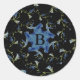 Blue and black Sage fractal art Monogram Classic Round Sticker